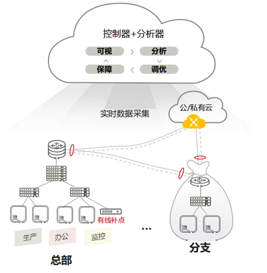 為了應對上述多分支機構企業的困境與挑戰,基于SDN-WAN與云管技術的多分支機構網絡解決方案誕生:
